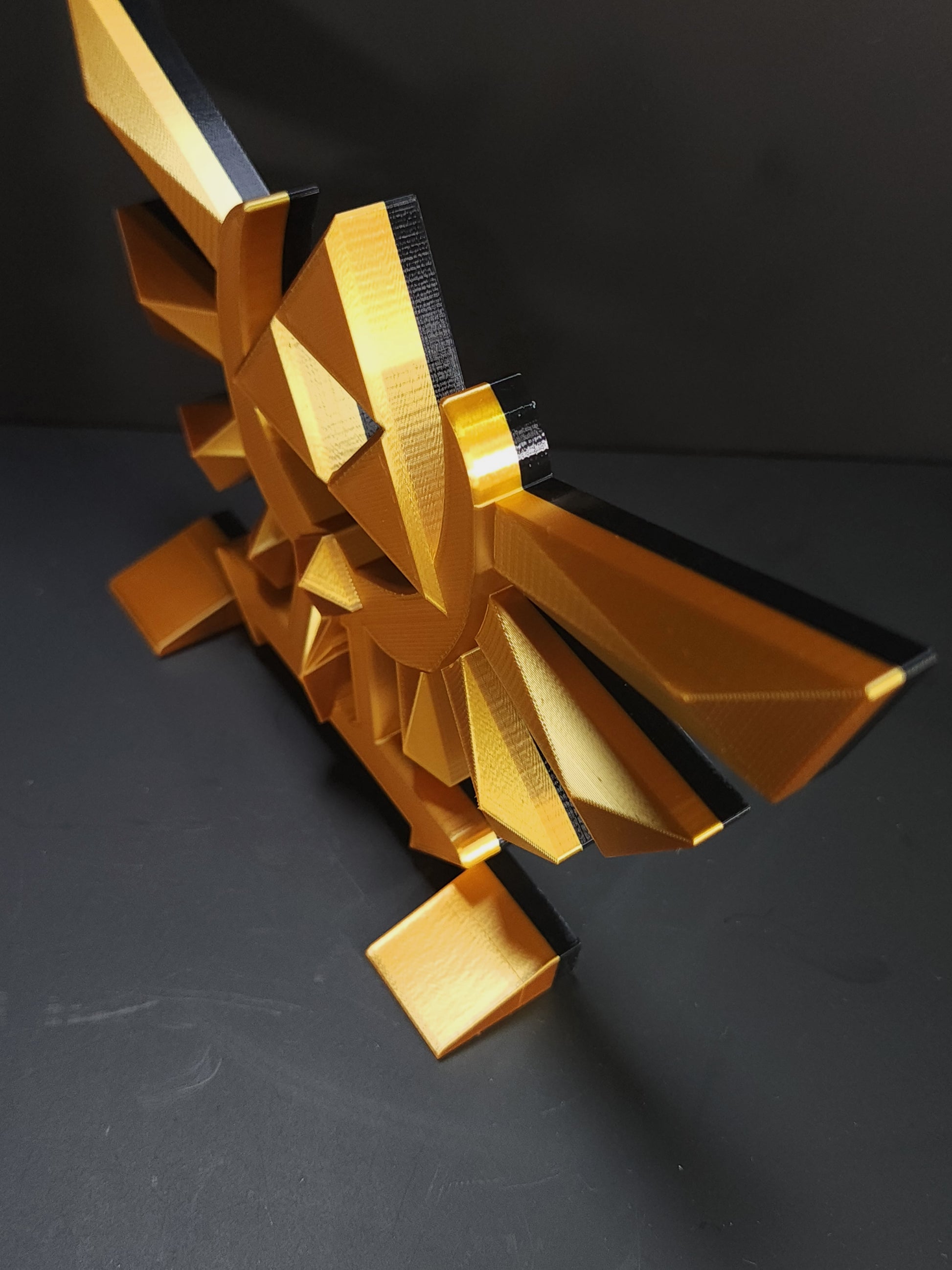 🎨 Material: Durable 3D printed plastic with a metallic gold and black finish