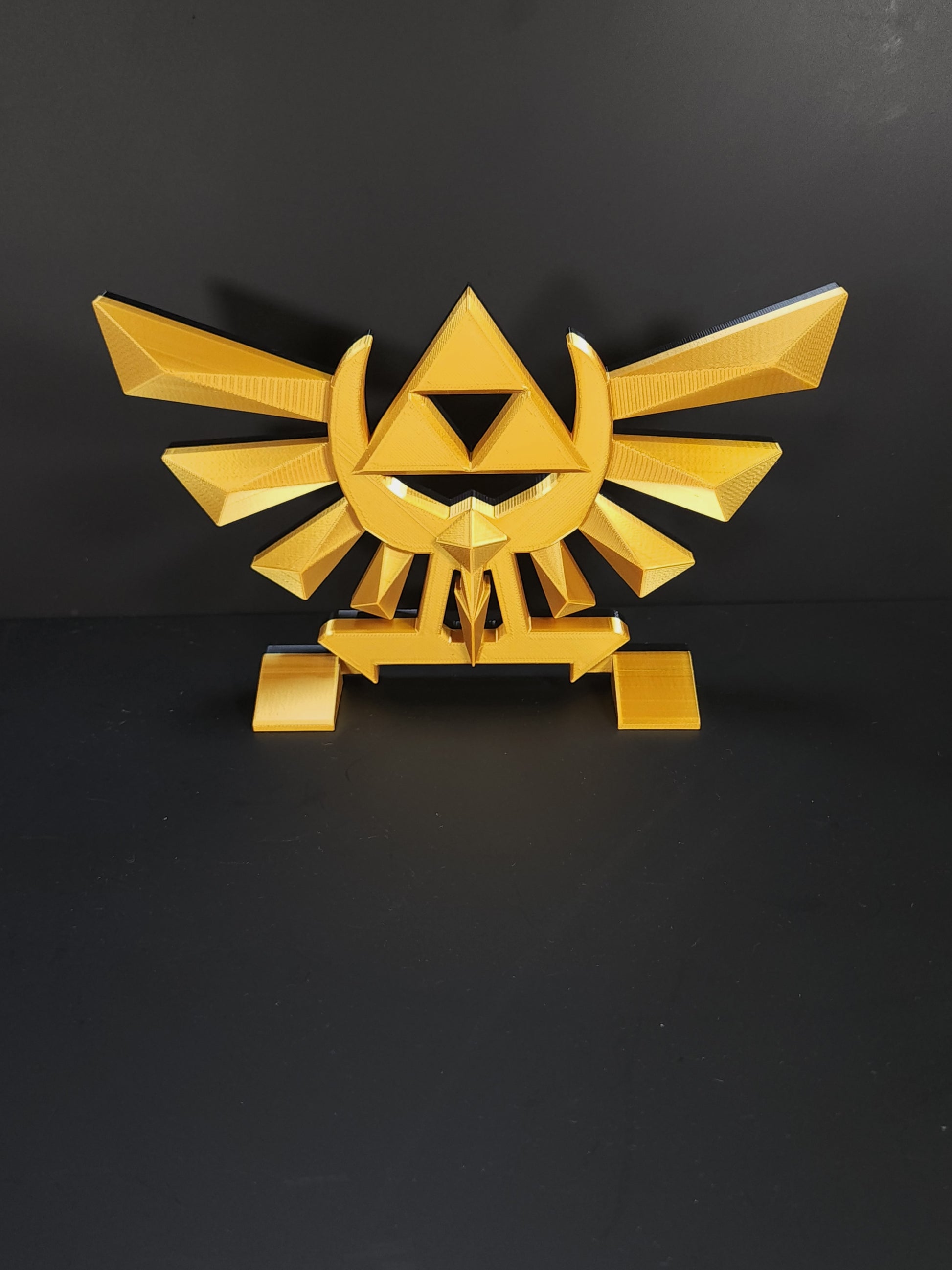Bring a touch of Hyrule's legacy into your game room with this stunning Hyrule Crest Display Piece, expertly 3D printed and hand-finished for a premium look. This piece features a striking metallic gold color that makes it an eye-catching centerpiece for any Legend of Zelda fan. Whether you’re a gamer, streamer, collector, or simply love unique gaming décor, this iconic crest is the perfect way to show off your love for the series.